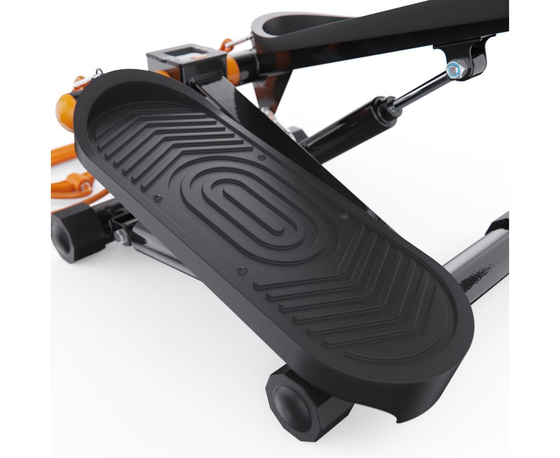 Степпер оснащён гидравлической системой нагрузки, которая обеспечивает плавный и тихий ход педалей. Вы можете механически регулировать уровень нагрузки, подстраивая интенсивность тренировки под свои цели и физическую подготовку. Максимальный вес пользователя — 110 кг, что делает тренажёр универсальным для большинства пользователей.