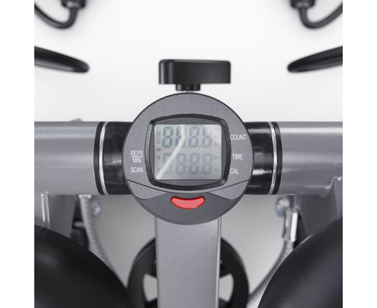 Дисплей степпера показывает время, количество сожженных калорий и количество шагов в минуту. В комплекте с тренажером идет батарейка LR44 для работы дисплея.