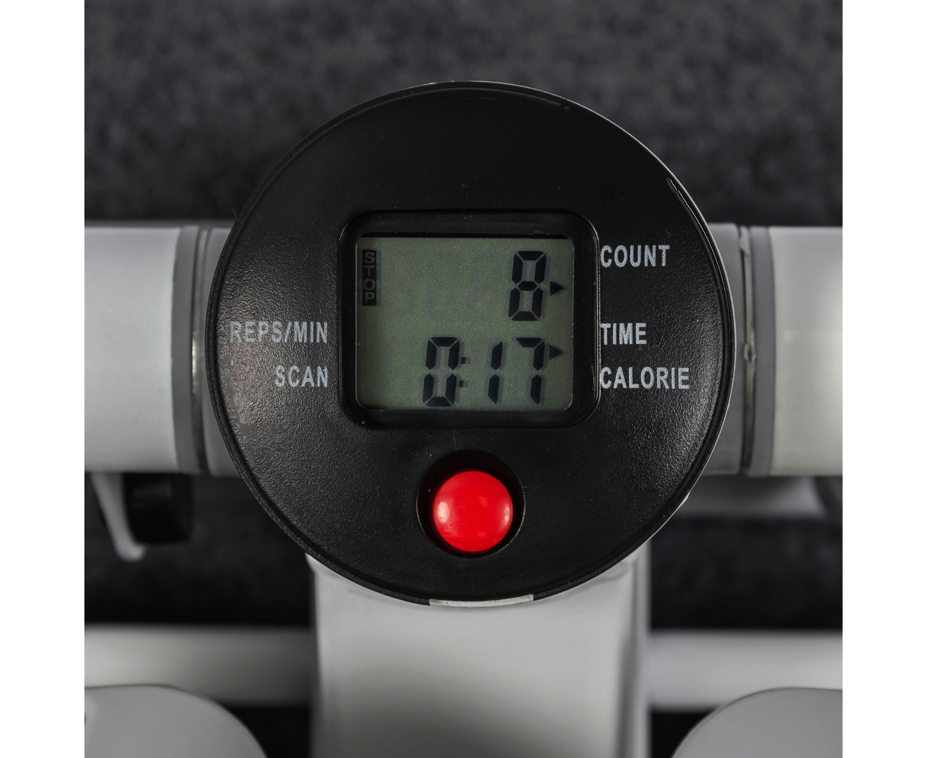 Дисплей, оснащенный ЖК-монитором, который работает от 1 батарейки типа ААА, 1.5В, входящей в комплект, и показывает следующие параметры тренировки: время, количество шагов, общее количество шагов и калории. Он может контролировать и записывать ваши данные, которые помогут планировать вашу следующую тренировку.