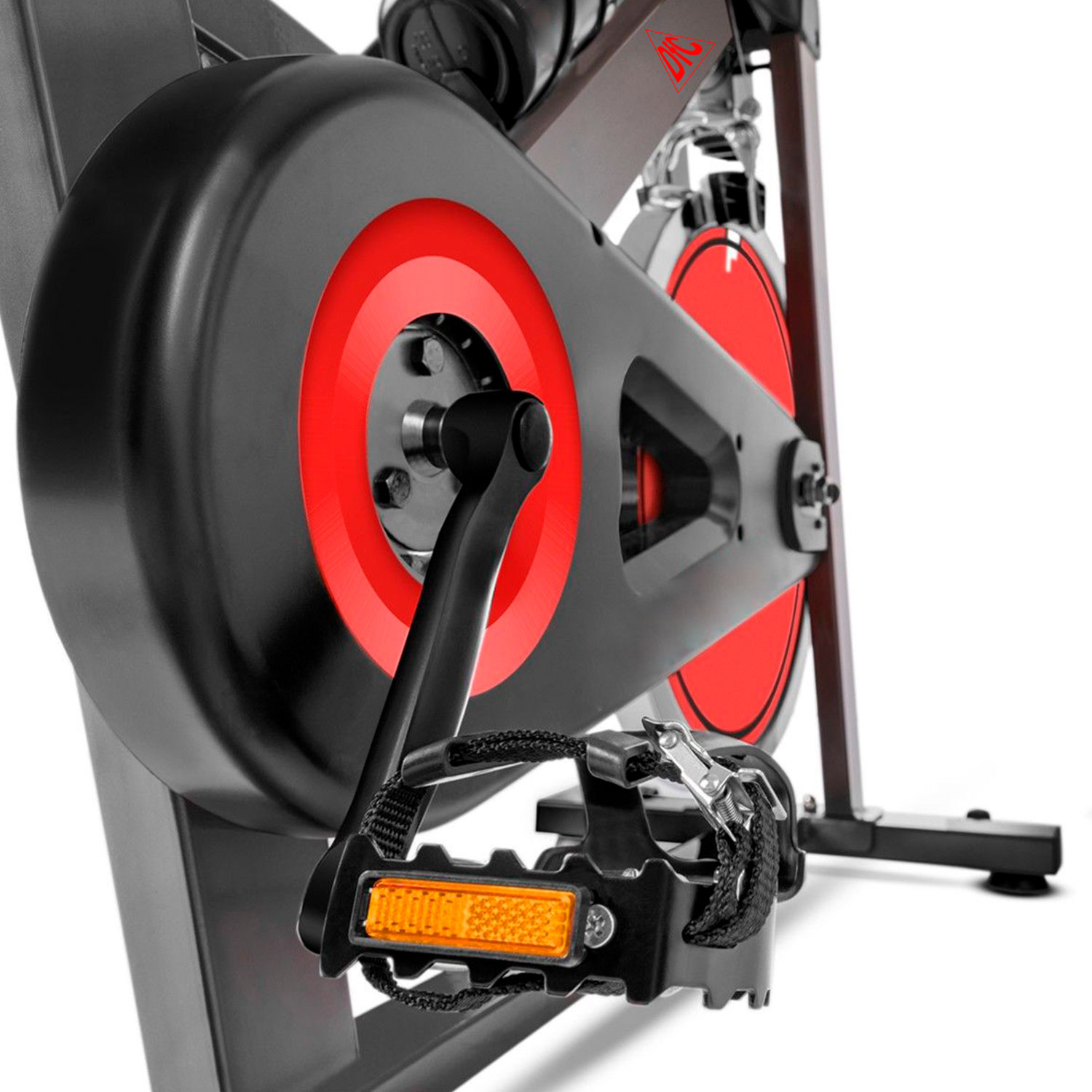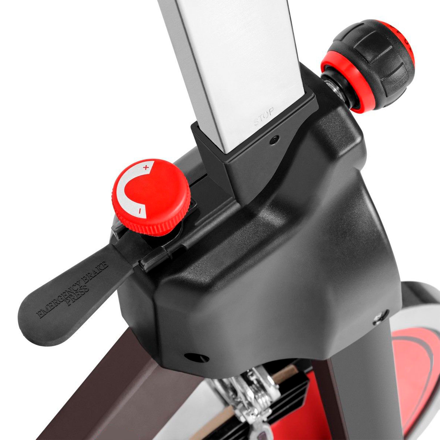 Вертикальный механический спин-байк с ременным типом привода и колодочной системой нагружения. Изменение нагрузки с помощью удобной рукоятки на корпусе тренажера, с экстренным тормозом.