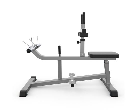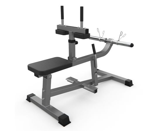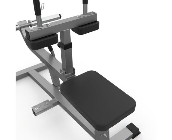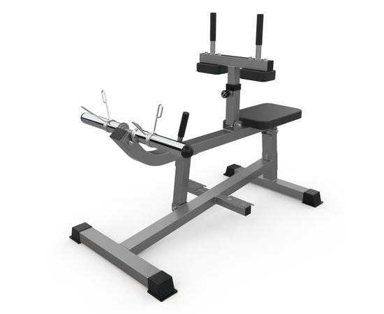 Тренажёр для развития икроножных мышц DFC D100866. Максимальная нагрузка до 300 кг, нагрузка на сиденье и подушки для упора коленей до 120 кг. Нагрузка на держатели для дисков до 300 кг.