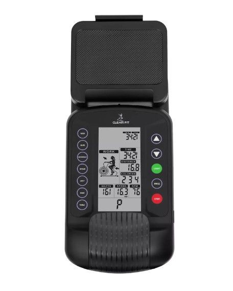 Лаконичная консоль управления состоит из большого контрастного LCD дисплея и удобной, простой панели клавиш. Все основные параметры тренировки отображаются на экране: время тренировки / скорость / дистанция / калории / пульс / энергия, Вт / ODO. Программный пакет включает 4 целевые тренировки обратного отсчета: калории / дистанция / время / пульс, 3 интервальные и режим «быстрый старт», наиболее эффективные для контроля сжигания веса, выносливости, улучшения кардиоваскулярной системы для ежедневных велотренировок.