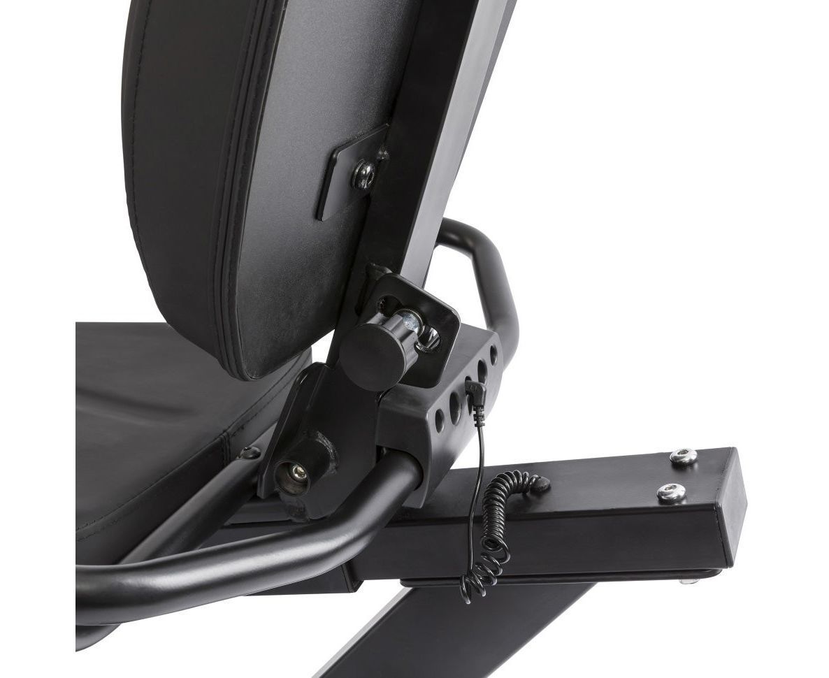 Инерционный вес маховика велотренажора составляет 11 кг, что обеспечивает плавный и бесшумный ход педалей. Между стойкой руля и кожухом маховика относительно большое пространство, чтобы безопасно сесть и слезть. Прочная рама обеспечивает достаточную поддержку при посадке и спуске.