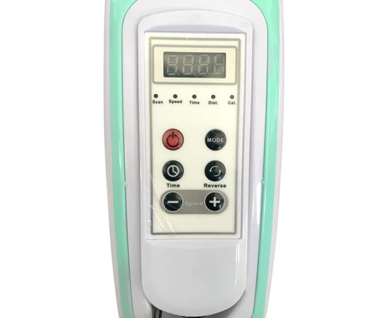 Тренажёр оснащён пультом, который вынимается из основного блока для дистанционной регулировки. На дисплее отображается скорость, время, пройденная дистанция, количество шагов в минуту и затраченные калории. Имеется 12 режимов изменения скорости.
