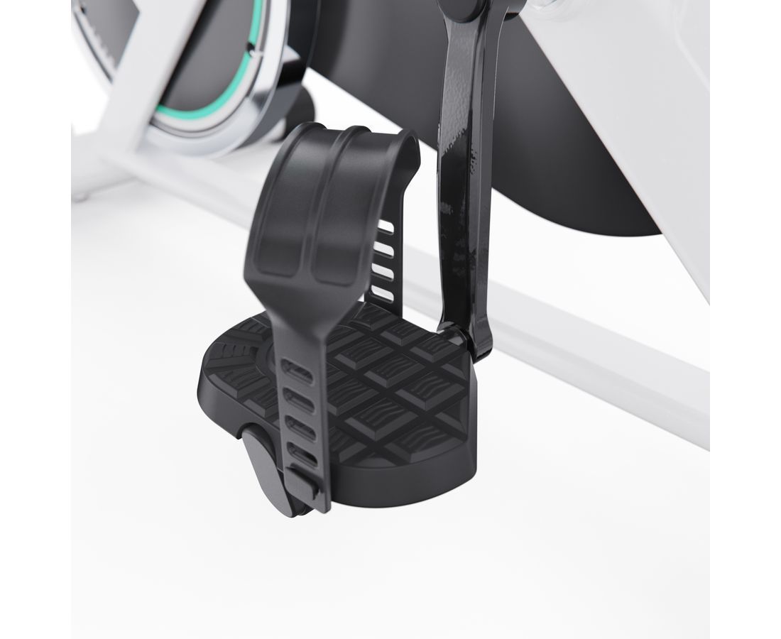 Механическая колодочная система нагрузки с бесступенчатой регулировкой обеспечивает плавный и стабильный ход. Маховик с инерционным весом 12 кг даёт ощущение натуральной езды, что делает этот велотренажёр для ног особенно эффективным в проработке нижней части тела.