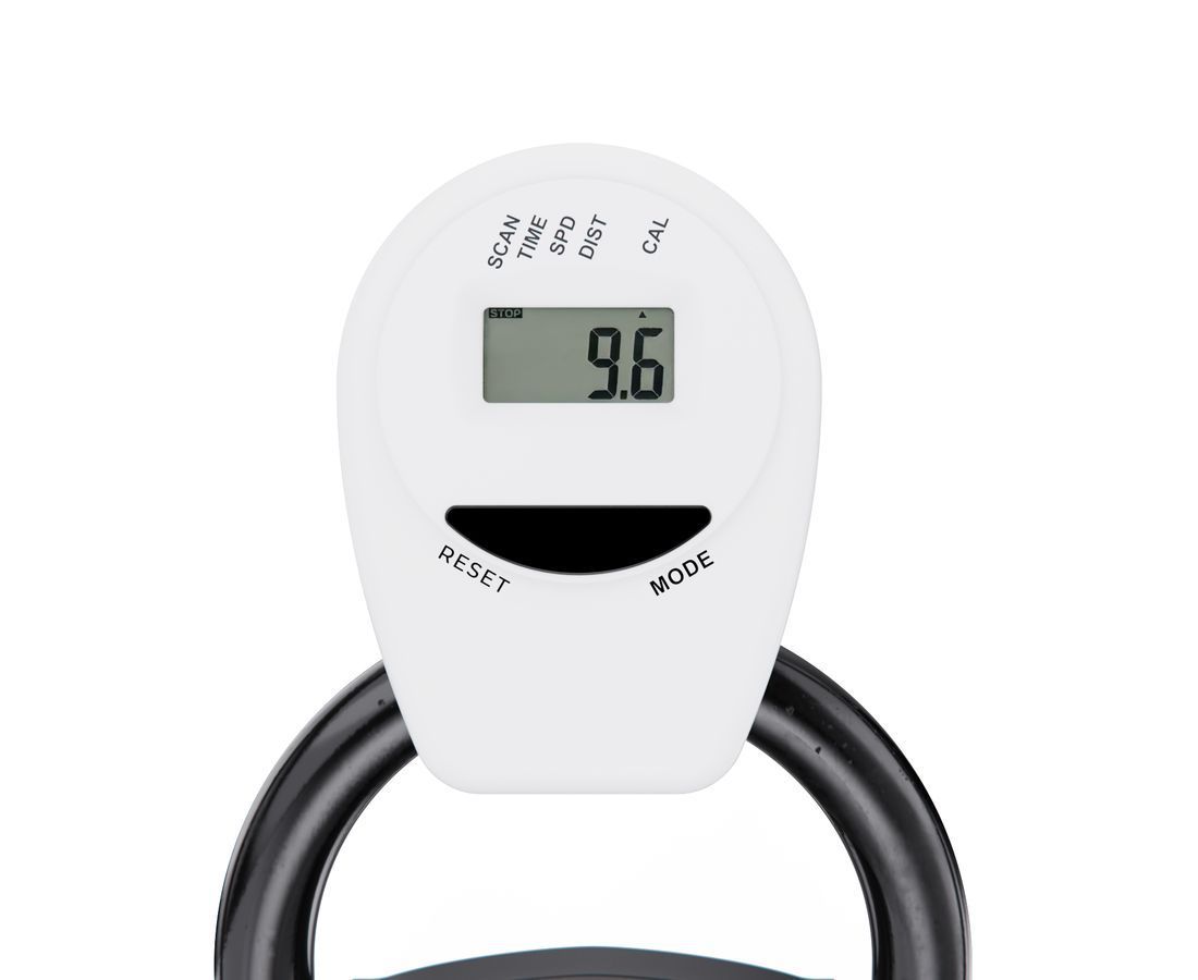 LCD-дисплей выводит всю необходимую информацию: время тренировки, скорость, пройденную дистанцию, количество сожжённых калорий и режим сканирования. Это позволяет отслеживать прогресс и корректировать нагрузку в реальном времени. Для работы консоли требуется 2 ААА батарейки (не входят в комплект).