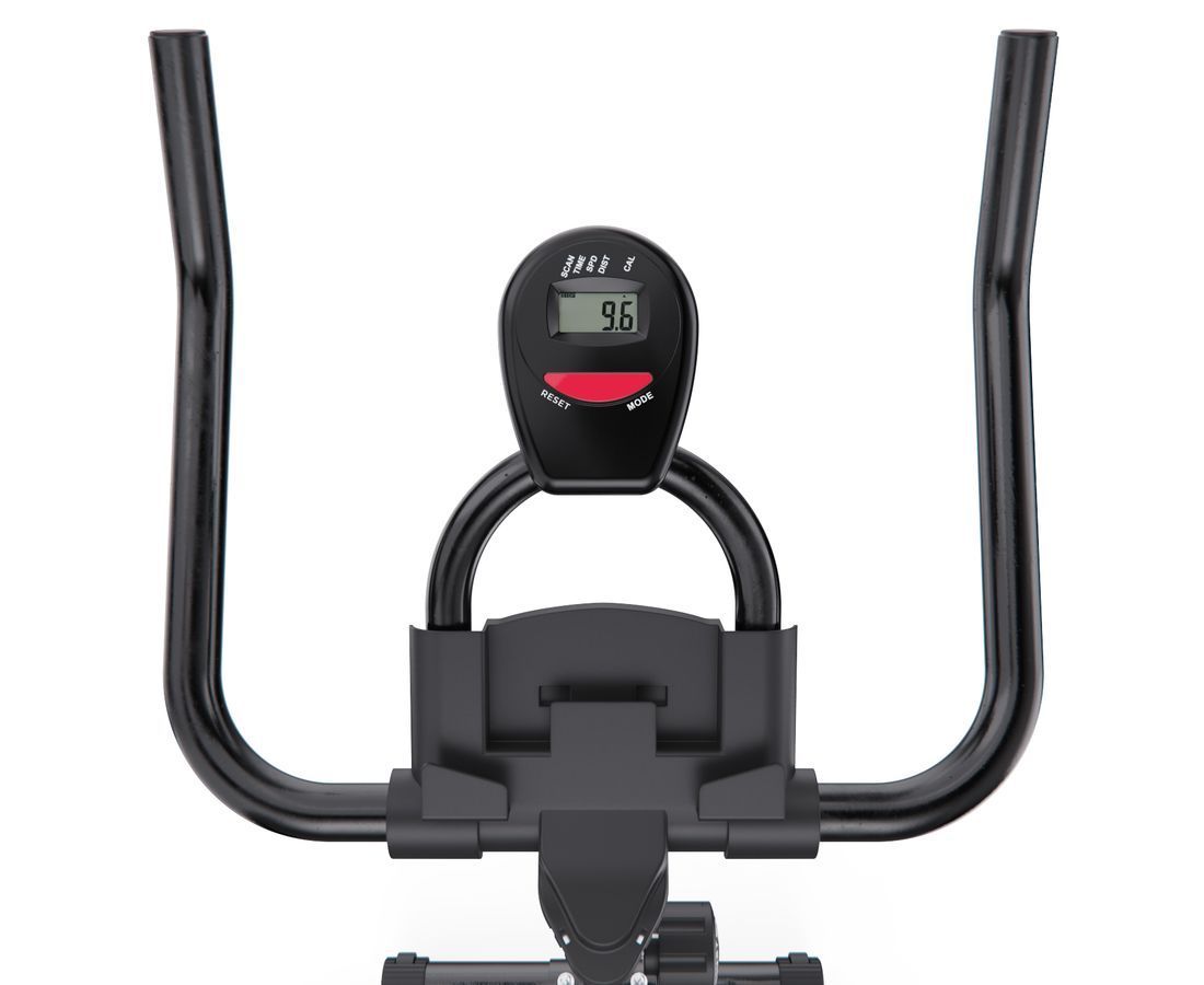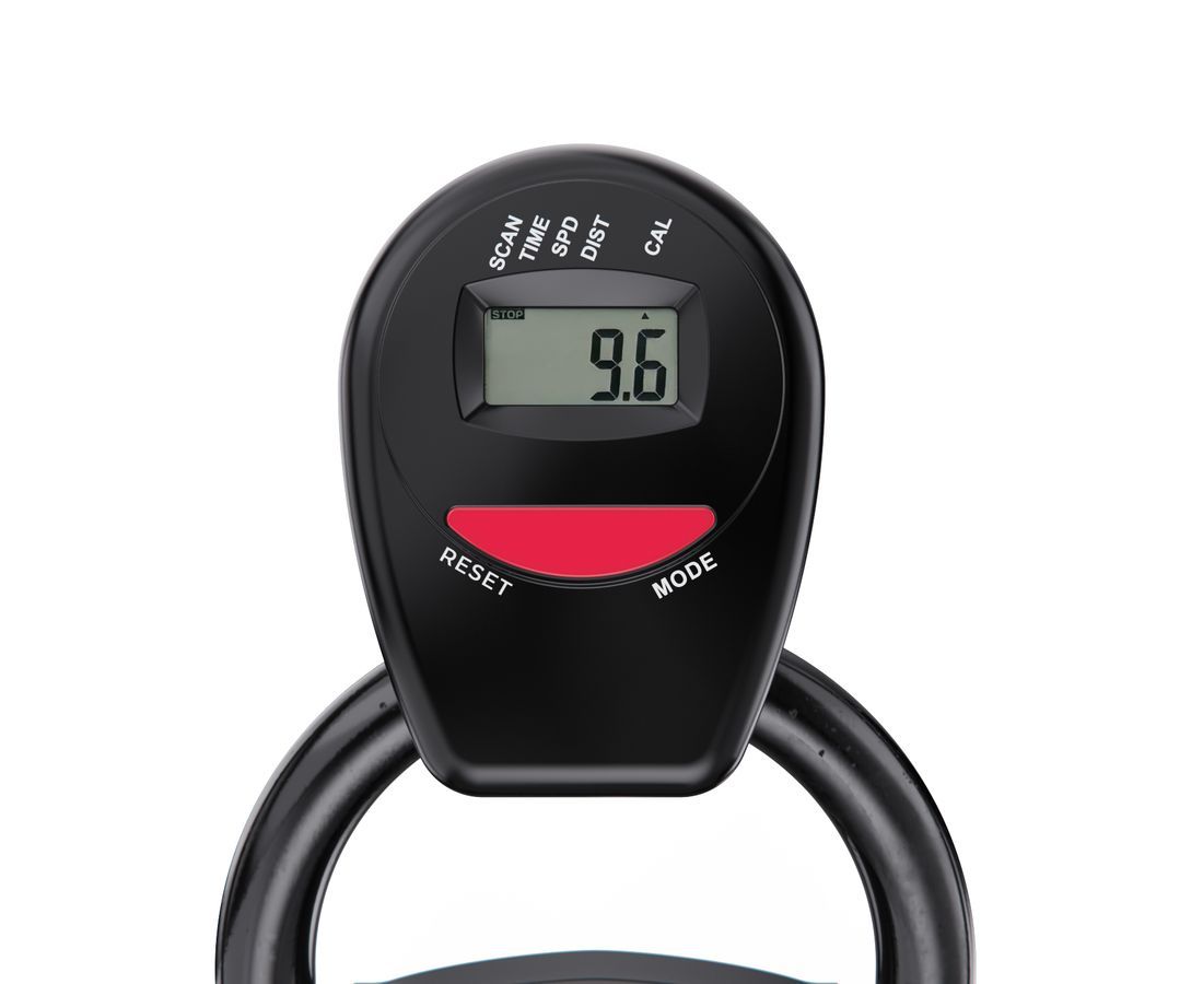 LCD-дисплей выводит всю необходимую информацию: время тренировки, скорость, пройденную дистанцию, количество сожжённых калорий и режим сканирования. Это позволяет отслеживать прогресс и корректировать нагрузку в реальном времени. Для работы консоли требуется 2 ААА батарейки (не входят в комплект).