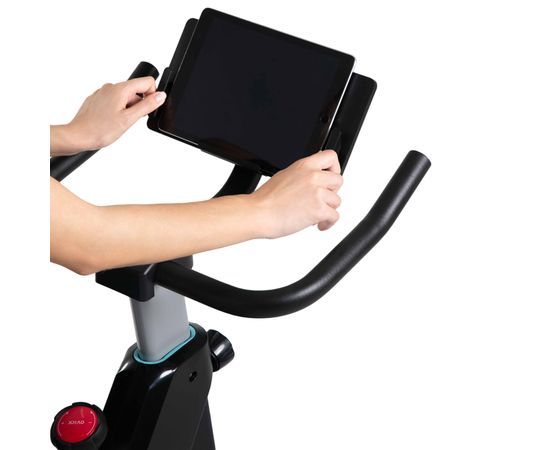Профессиональный руль велотренажора с разными видами хвата и покрытием, устойчивым к скольжению и поту, гарантирует удобство и безопасность в процессе тренировки. Регулировка руля по высоте дает дополнительное удобство и разнообразие. Транспортировочные ролики помогают быстро и с легкостью перемещать тренажер в нужное для вас место, а подставка под планшет и держатель для бутылки сделают ваши тренировки ещё более комфортными.