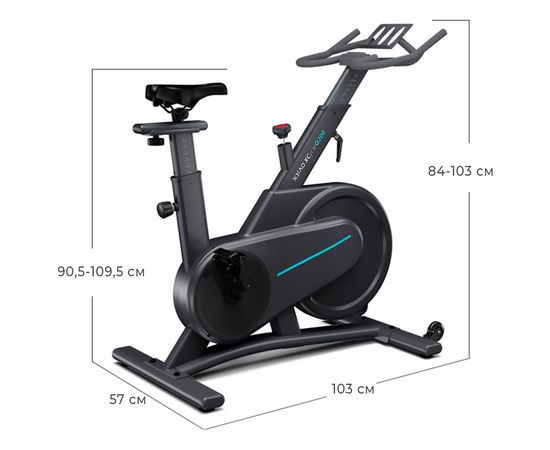 Спортивное сиденье регулируется не только по высоте и горизонтали, но и углу наклона, таким образом меняя интенсивность тренировки и положение пользователя в седле. Руль также регулируется по высоте, внося разнообразие и делая тренажёр более комфортным. Спин-байк рассчитан на пользователя весом до 130 кг.