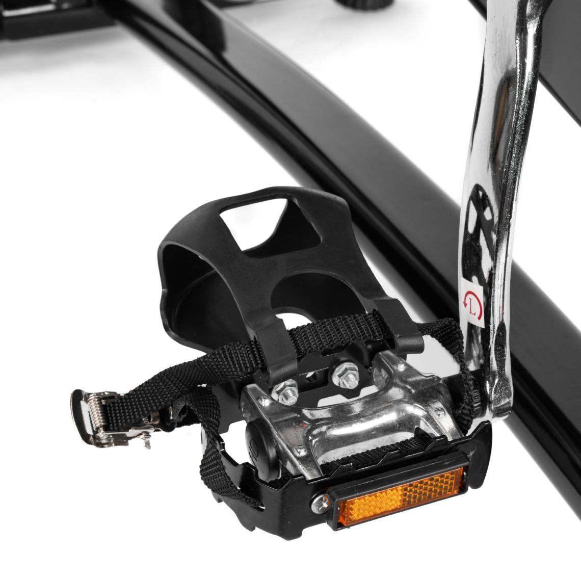 Велотренажер имеет монохромный LCD-дисплеей, который отображает ключевые параметры тренировки: время, калории, дистанцию, скорость, сканирование, общую дистанцию и пульс. Это позволит отслеживать прогресс и корректировать нагрузку в реальном времени. Для работы консоли используются две батарейки типа AAA (в комплект не входят).