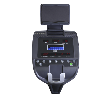 Тренировочный компьютер представлен многофункциональным LED дисплеем с точечной матрицей профессионального уровня. Основной экран дополняют 7 небольших буквенно-цифровых LED-дисплея с красной подсветкой. На экран компьютера выводятся все основные данные – время, скорость, дистанция, уровень нагрузки, калории, ватты, темп, фитнес тест, пульс и жироанализатор. В программный пакет входят 12 предустановленных программ, в которых используются различные виды тренировок. Помимо предустановленных программ, можно воспользоваться самостоятельно регулируемым ручным режимом, а также создать собственную программу в одном из 4-х пользовательских режимов. 3 пульсозависимые программы отвечают за тренировку тех пользователей, которым важно контролировать верхние пределы частоты сердечного ритма. Еще одна функция - жироанализатор Body Fat - даст оценку параметрам, связанным с весом. Плюс ко всему есть Ватт-программа.