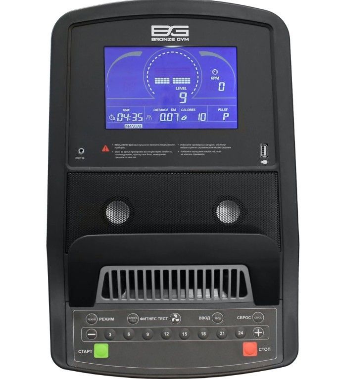 Бренд Bronze Gym Артикул R800M_NEW Назначение коммерческое Тип велотренажера велотренажер горизонтальный Посадка горизонтальная Система нагружения электромагнитная Количество уровней нагрузки 24 Регулировка нагрузки электронная Инерционный вес маховика, кг 15 Тип педального узла литой шатун на подшипниках Сиденье комфортабельное сиденье со спинкой,¶профессионального класса Регулировка положения сиденья по горизонтали Рукоятки профессионального уровня, с разноплановыми¶хватами и подставками для локтей Измерение пульса есть Консоль LCD Тип консоли многофункциональный LСD основной дисплей с графической матрицей Показания консоли время, скорость, наклон, дистанция, калории, пульс, профиль, ур-нь нагрузки Общее количество программ 23 Спецификация программ ручной режим, 12 предустановленных программ, программа фитнес, 4 пользовательских программ, 4 пульсозависимые программы, фитнес тест Мультимедиа воспроизведение аудио файлов, встроенные динамики Интеграционные технологии AUX IN (воспроизведение аудио через смартфон/MP3), USB для подзарядки смартфона Язык интерфейса русский, английский Подставка под планшет/смартфон Да Вентилятор Да Транспортировочные ролики Да Компенсаторы неровностей пола Да Дополнительные функции быстрые клавиши регулировки нагрузки на поручнях Дополнительные особенности тренажера держатель бутылки Вес нетто, кг 60 Вес брутто, кг 72 Максимальный вес пользователя 160 Подключение к сети 220 В Производитель Fitathlon Group (подразделение в Германии) Страна изготовления КНР Гарантийный срок мес. 24 мес. Размеры: Размер в рабочем состоянии, см. 155х68x138 Размеры упаковки, см. 160х43x74 Характеристики