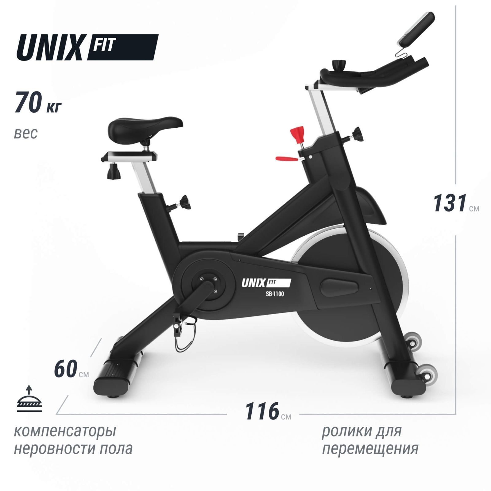 Профессиональный спин байк UNIX Fit SB-1100 PRO разработан специально для интенсивных тренировок дома и в спортивных залах. Отличительной особенностью велотренажера является высокая прочность конструкции, позволяющая выдерживать нагрузку до 180 кг и рост пользователей до 200 см. Этот тренажёр идеально подходит профессиональным спортсменам и людям, стремящимся поддерживать отличную физическую форму. Конструкция UNIX Fit SB-1100 PRO отличается надежностью и прочностью благодаря качественной стальной раме.