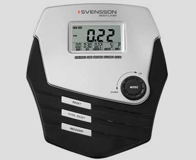 Черно-белый LCD-дисплей диагональю 9 смЧерно-белый LCD-дисплей диагональю 9 см одновременно выводит на экран различные параметры тренировки - время, дистанцию, скорость, калории, обороты в мин., пульс. Помимо этого, здесь предусмотрена функция фитнес-теста (Recovery) - она позволяет быстро оценивать тренированность человека и определять, насколько хорошо развита его сердечно-сосудистая и дыхательная системы.