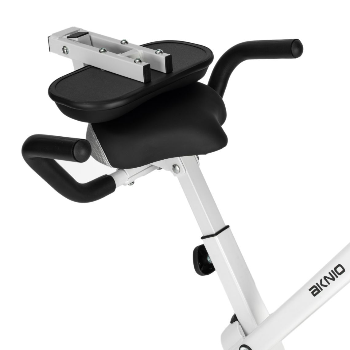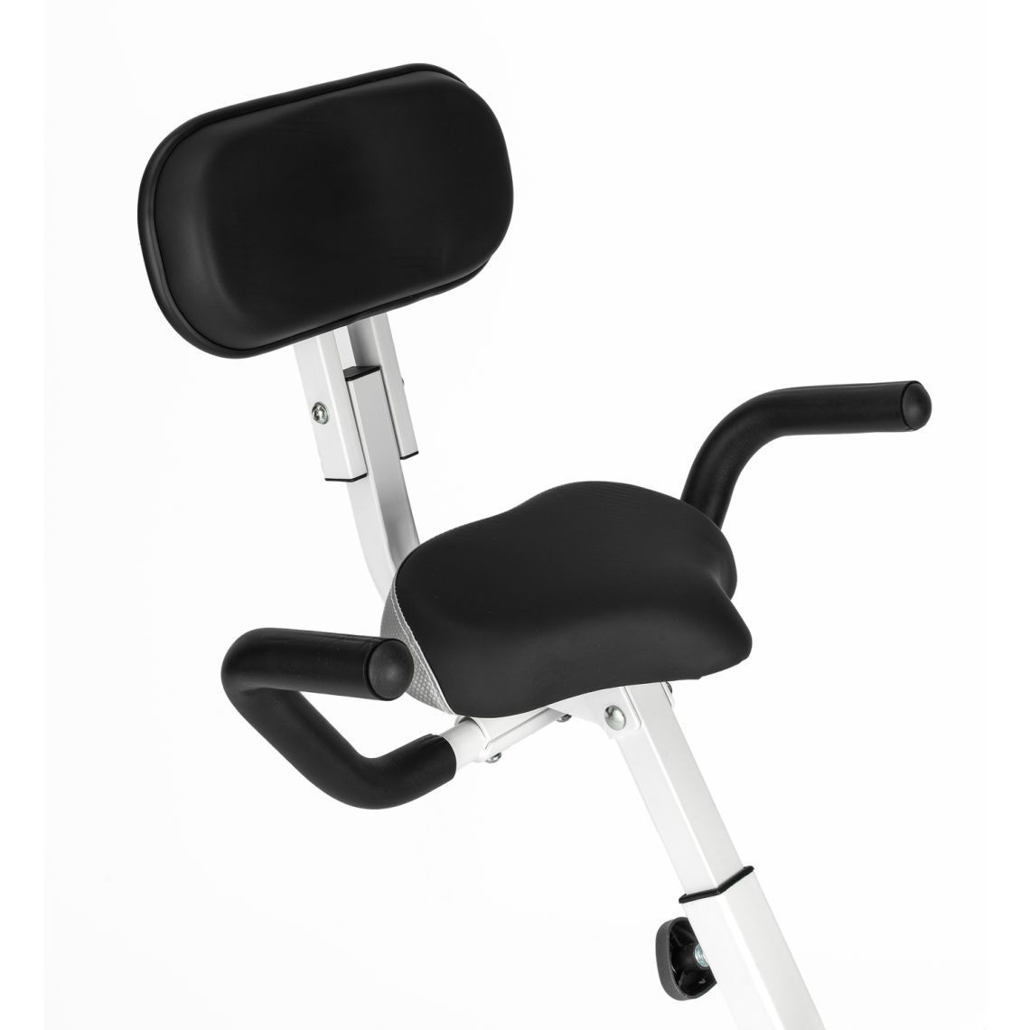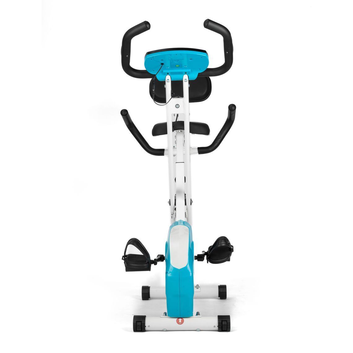 Педали оснащены фиксирующими ремнями, обеспечивая надёжную постановку стопы и безопасность во время занятий. Складная конструкция позволяет компактно хранить тренажёр после использования — модель не занимает много места и отлично подходит даже для небольших помещений. Для удобного перемещения предусмотрены транспортировочные ролики.