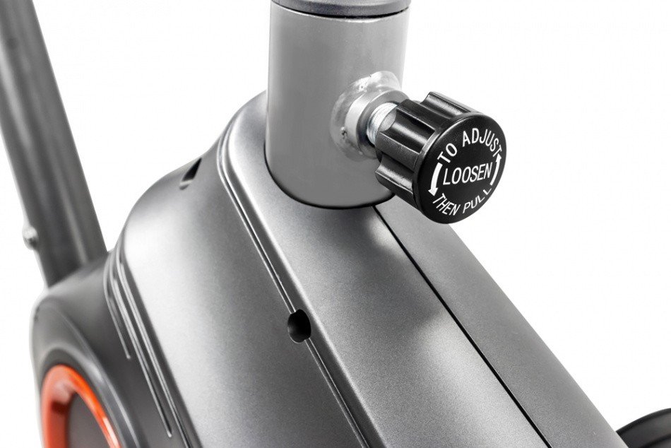 За показатели пульса отвечают вмонтированные в рукоятки сенсорные датчики пульса. Велотренажер удобно перемещать благодаря двум транспортировочным роликам, а точное горизонтальное положение обеспечивают компенсаторы неровностей пола. Черно-белый LCD-дисплей с подставкой под смартфон или планшет одновременно выводит на экран различные параметры тренировки - время, дистанцию, скорость, калории, обороты в мин., пульс. Помимо этого, здесь предусмотрена функция фитнес-теста (Recovery) - она позволяет быстро оценивать тренированность человека и определять, насколько хорошо развита его сердечно-сосудистая и дыхательная системы. Конструкция рамы рассчитана на комфортную тренировку пользователей ростом до 180 см и весом до 120 кг. Расширенная гарантия - 2 года.