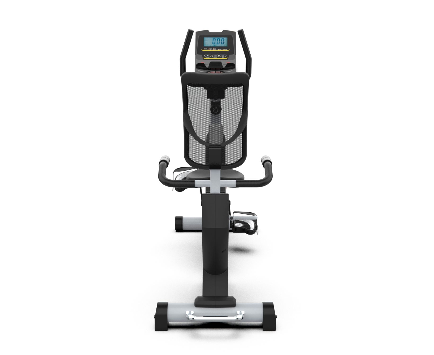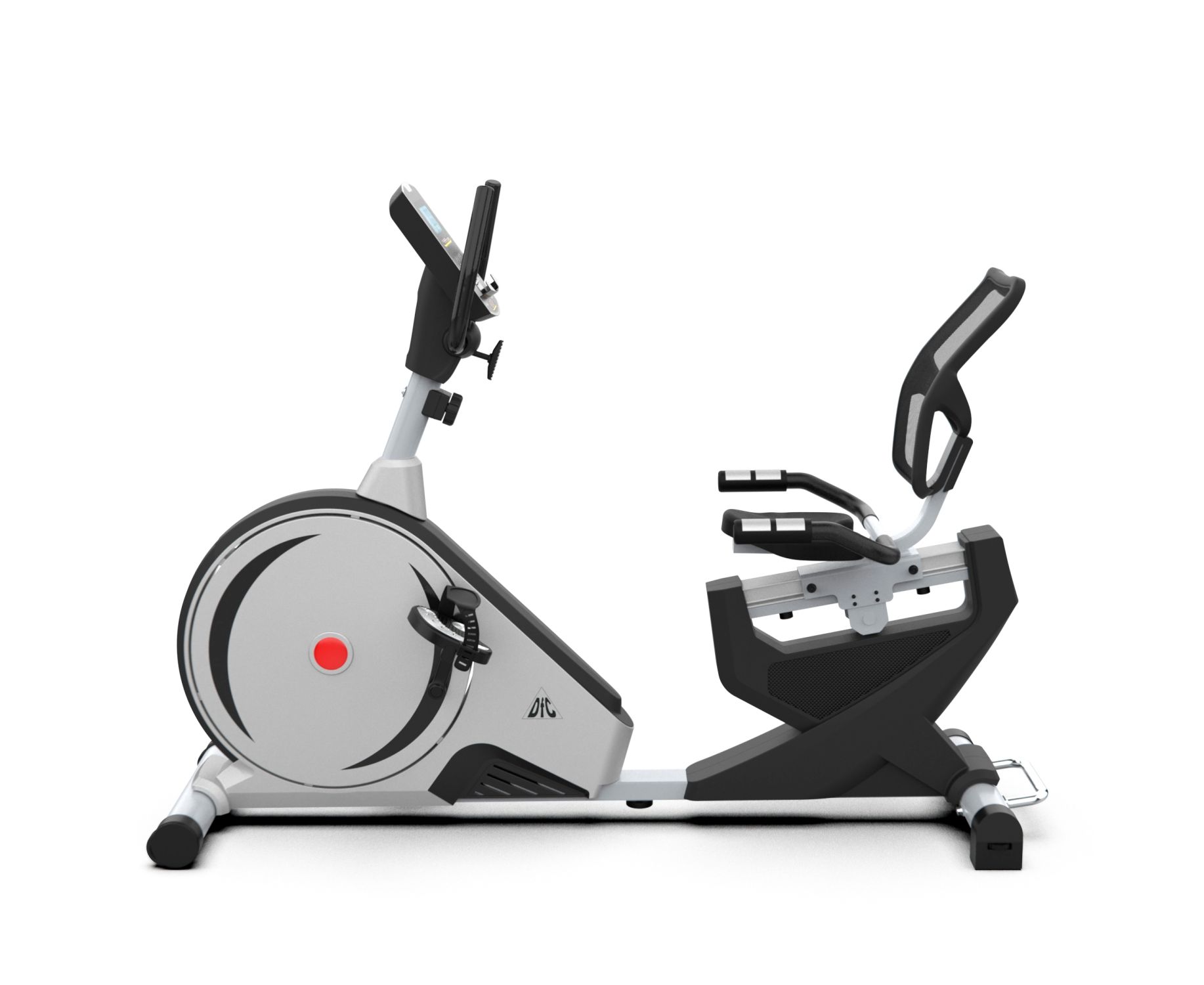 Велотренажер с удобной горизонтальной посадкой и магнитной системой нагружения. Мягкое регулируемое анатомическое сиденье с вентилируемой спинкой для правильной осанки. Датчики измерения пульса расположены на рукоятках и позволяют контролировать частоту сердечного ритма во время движения. Рифленные нескользящие педали позволяют удобно зафиксировать ногу с помощью регулируемого ремешка.