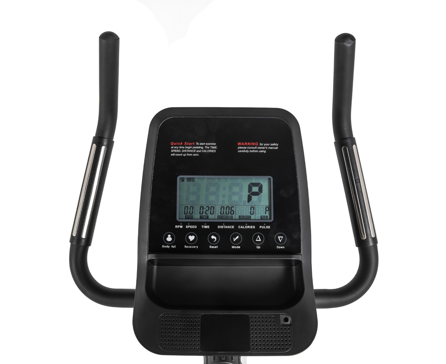 На консоли предусмотрен держатель для планшета и встроенный монохромный LCD дисплей. На нём отображаются параметры: скорость, пульс, время занятия, пройденное расстояние, калории.