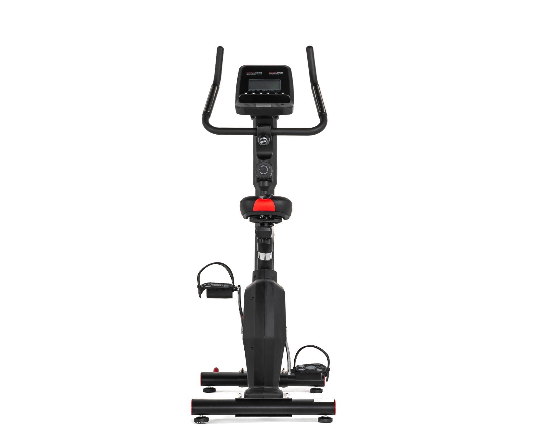 Тренажёр оснащён стабилизаторами спереди и сзади, отмеченными красными вставками. Надёжная конструкция выдерживает пользователей до 135 килограмм.