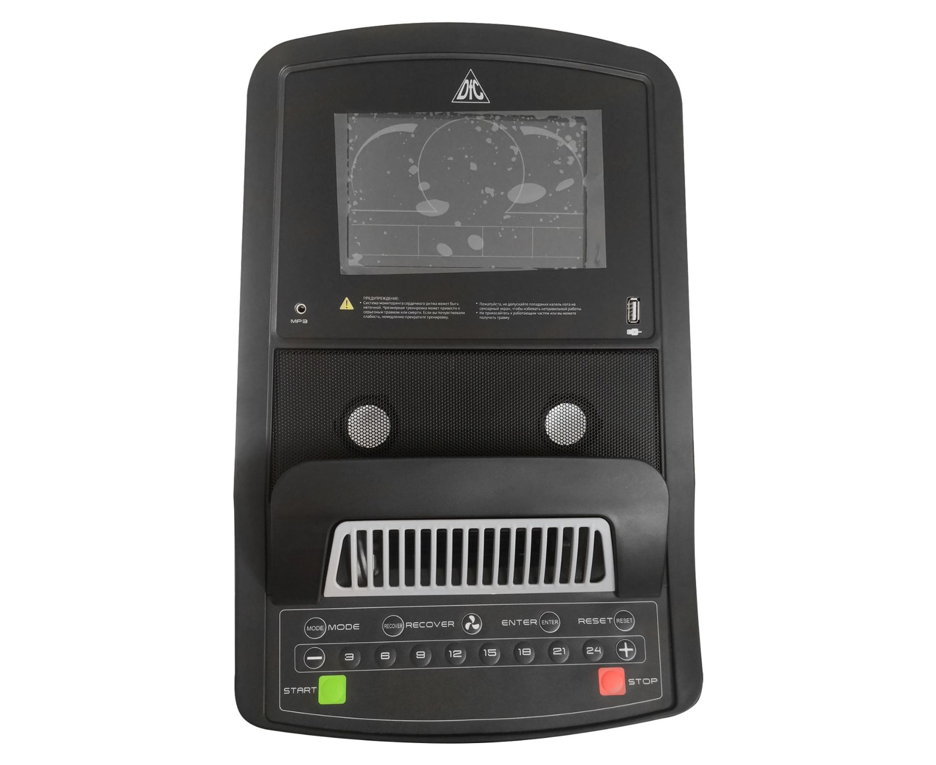 Для контроля над пульсом имеются сенсорные датчики на поручнях. Для более точного контроля рекомендуем приобрести набор: нагрудный кардиодатчик + часы-монитор DFC W117.