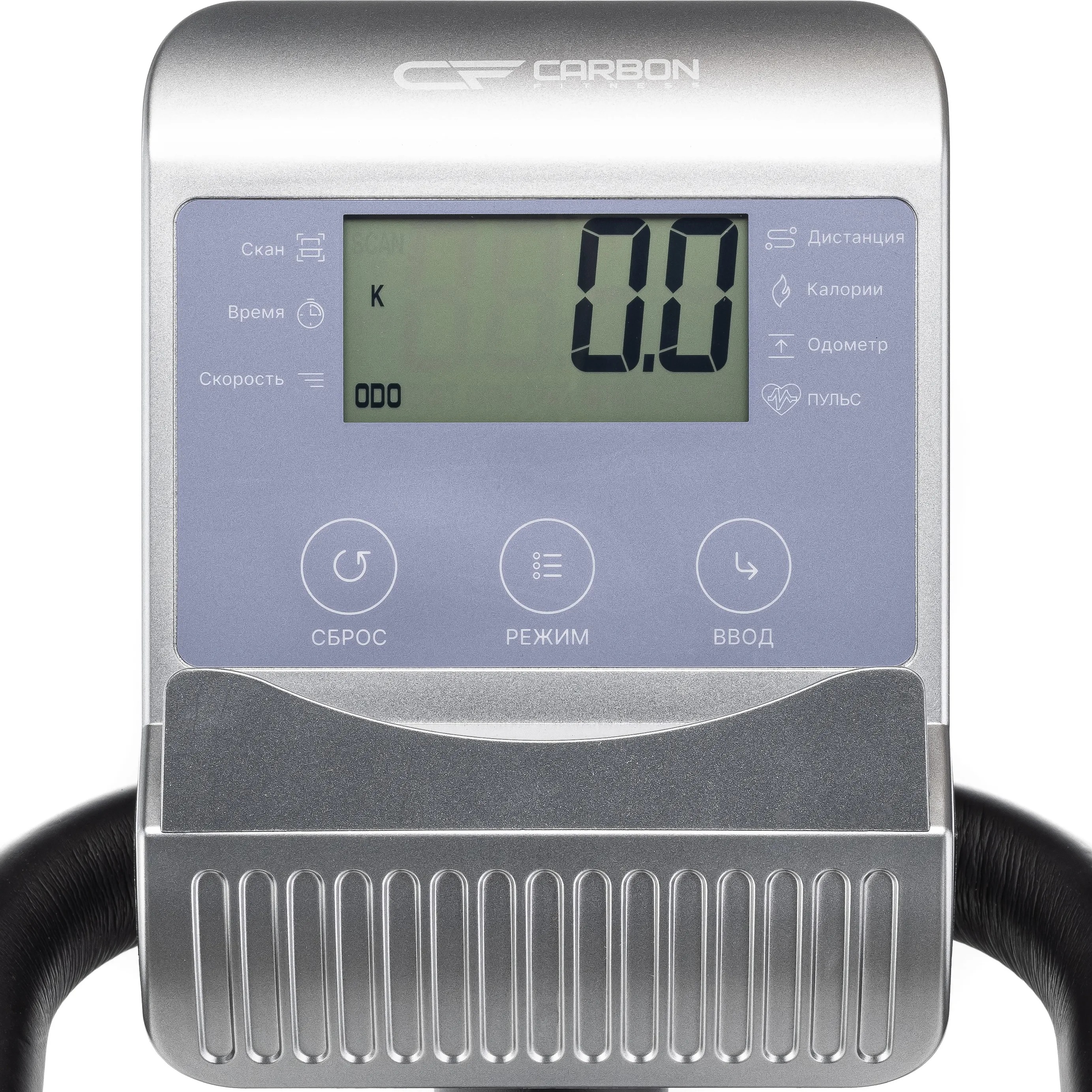 ОписаниеВелотренажер CARBON FITNESS R40 с горизонтальной посадкой и базовыми характеристиками - идеальный выбор для новичков в фитнесе и тех, кто столкнулся с проблемами в области спины. Его горизонтальная посадка и анатомическая форма сиденья создают оптимальные условия для комфортного и устойчивого положения тела во время тренировки. Такая конструкция снижает нагрузку на поясницу и обеспечивает поддержку для спины, позволяя тренироваться без излишнего дискомфорта и риска повреждений. Велотренажер CARBON FITNESS R40 оснащен магнитной системой нагружения optiSTEP™ с 8 уровнями нагрузки и маховик BioFusion с инерционным весом 16 кг которые позволяют легко регулировать интенсивность тренировки под свои потребности, а также обеспечивают плавность и стабильность движений. Вес тренажера составляет 35,2 кг, а сам тренажер выдерживает пользователя весом до 130 кг. Антискользящие педали с регулируемыми ремешками обеспечивают надёжное сцепление и безопасность во время тренировок. R40 оснащен транспортировочными роликами и компенсаторами неровностей пола, что делает процесс перемещения тренажера простым и удобным. Габариты тренажера составляют: 130*64*119см, делая его компактным и подходящим для установки даже в небольших помещениях. LCD-консоль велотренажера обеспечивает базовый набор показателей, включая время, скорость, дистанцию, калории, пульс и одометр, что помогает отслеживать прогресс тренировок и достигать поставленных целей с легкостью. Интерфейс консоли прост и интуитивно понятен для комфортного использования. Горизонтальный тренажер Carbon Fitness R40 это не просто инструмент для тренировок, а источник мотивации и заботы о вашем здоровье. С нашей 12-месячной гарантией вы получаете уверенность в надежности и высоком качестве этого тренажера. Не откладывайте заботу о себе на потом - начните прямо сейчас и достигните новых высот в своих тренировках! Ключевые преимущества CARBON FITNESS R40: • магнитная система нагружения optiSTEP™ с 8 уровнями нагрузки; • маховик BioFusion с инерционным весом 16 кг; • конструкция с анатомическим сиденьем для стабилизации спины; • габариты тренажера: 130*64*119 см.