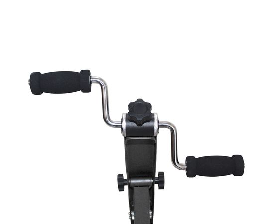 Стойка велотренажера с регулировкой позволяет установить оптимальную высоту верхних педалей для удобства занятий людям разной комплекции.