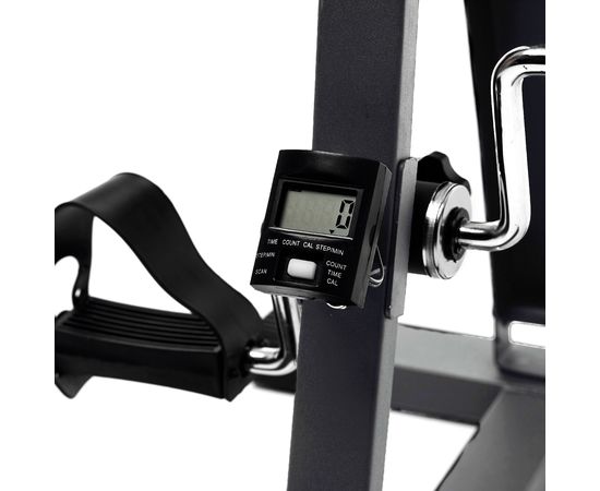 Педали для ног оборудованы резиновыми ремешками. Занятия на тренажеры выполняются сидя на стуле, кресле и любимом диване.Необходимую нагрузку (сопротивление) педалей можно отрегулировать отдельно для рук и для ног с помощью удобной пластиковой ручки.
