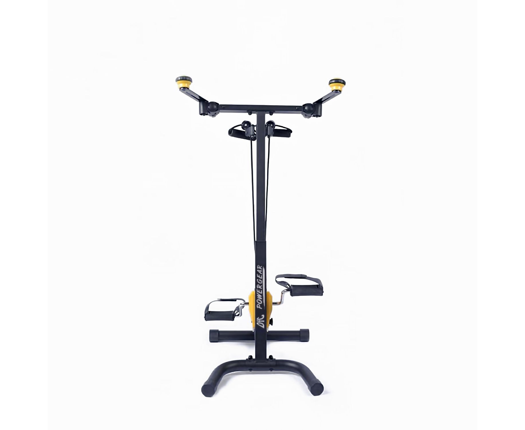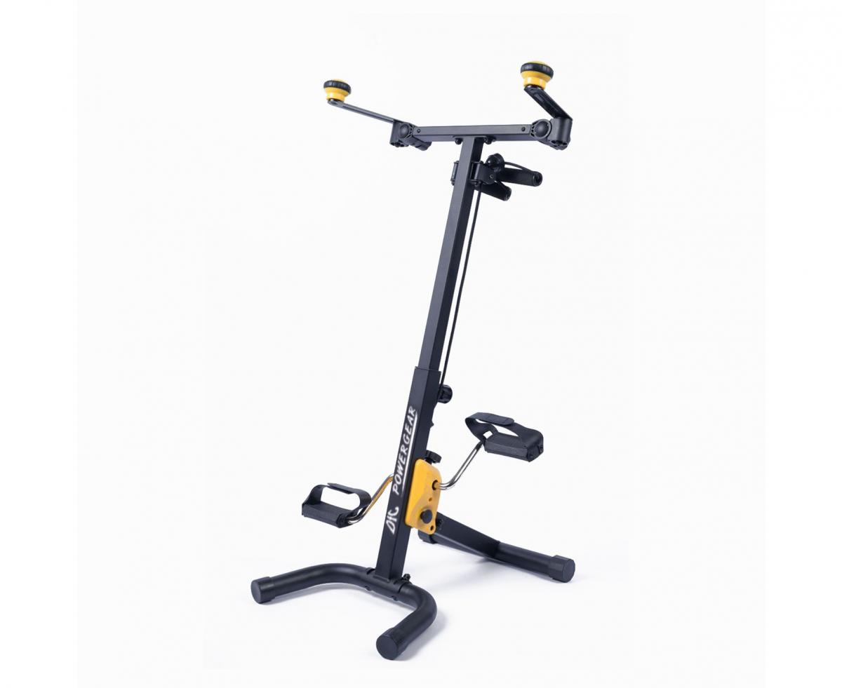 Велотренажёр двойной DFC B810W с накладками и ручками ярко-жёлтого цвета для домашнего использования. Многофункциональная модель позволяет тренировать как руки, так и ноги одновременно или врозь. Для разнообразия тренировок в комплекте поставляются эспандеры.