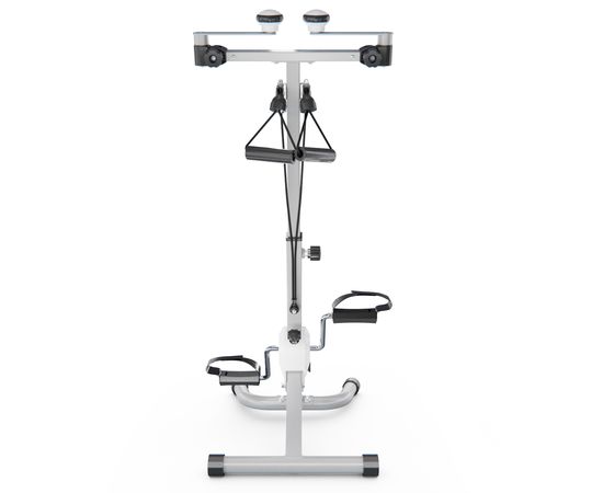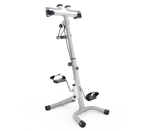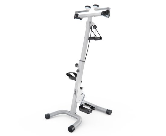 Многофункциональная модель позволяет тренировать как руки, так и ноги одновременно или врозь. Максимальный вес пользователя до 100 кг. Эспандеры в комплекте. Ручки тренажёра регулируются по горизонтали. Высота регулируется от 86 до 98 см в 8-ми положениях.
