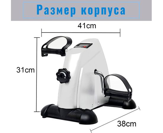 Регулировка ремней педалей.Компьютер: скан, время, расстояние, обороты в минуту, скорость, калории. Питание компьютера от ААА батарейки 1.5В, входит в комплект.