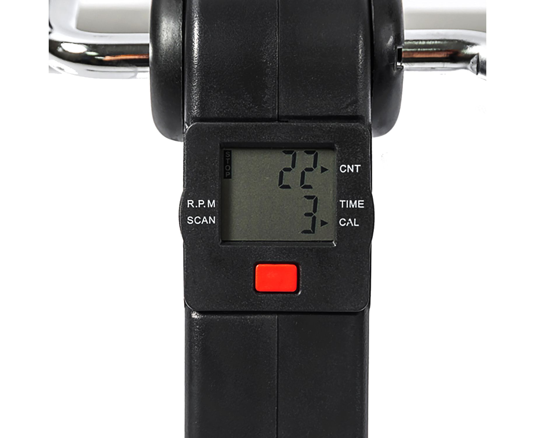 Компьютер с ЖК-дисплеем отображает следующие параметры тренировки: время, калории, количество шагов, количество шагов в минуту, сканирование. Питание компьютера от батарейки LR44/AG13, 1.5 В, идущей в комплекте.