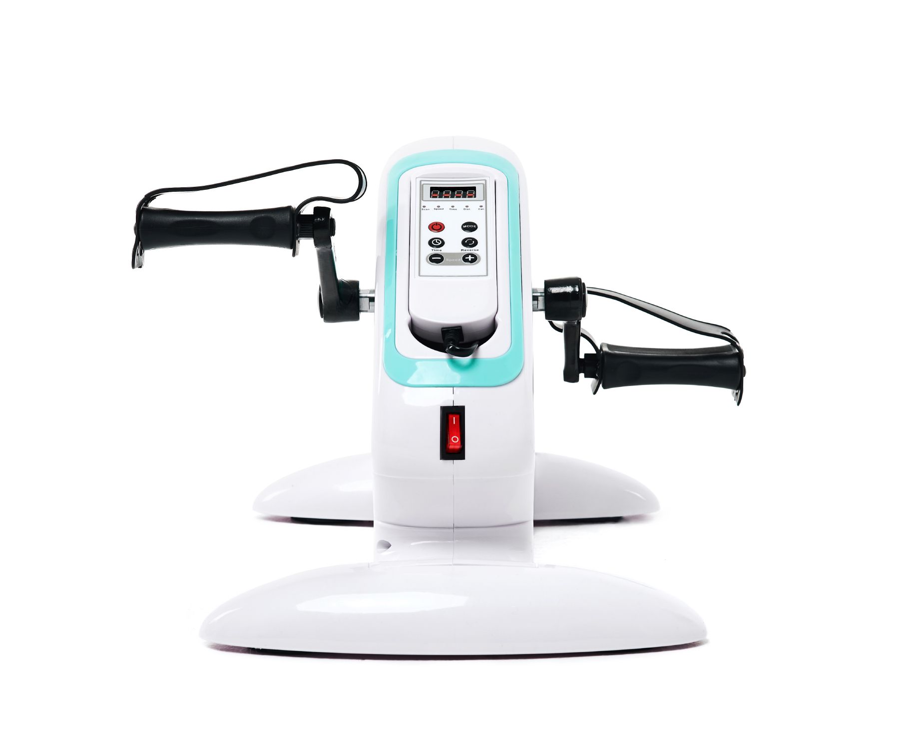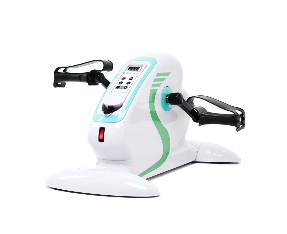 Тренажёр работает от сети 220 В. Самостоятельный ход педалей вперёд и назад помогает в реабилитации и разработке мышц без усиленной нагрузки.