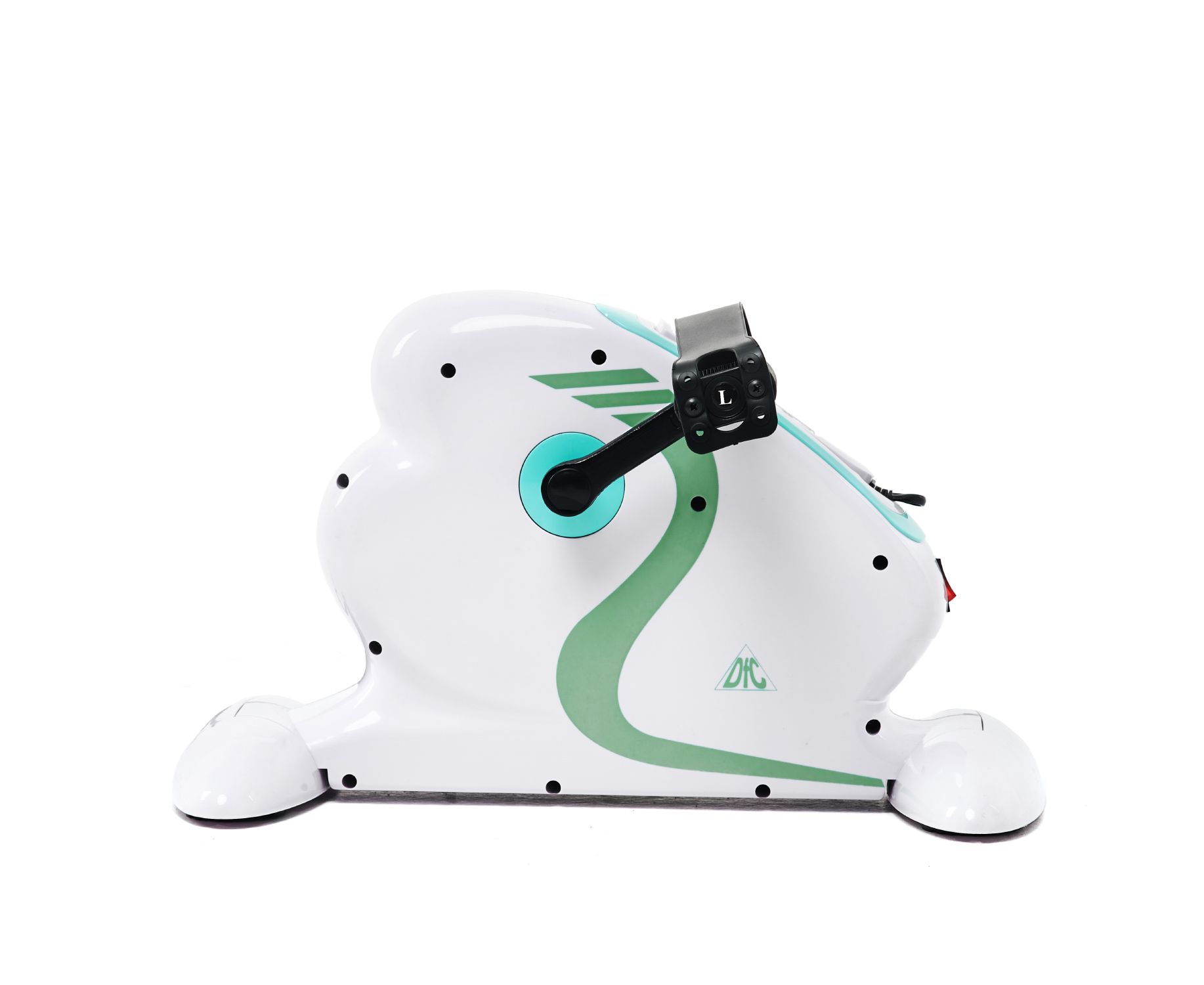 Минивелотренажёр выполнен в белом цвете с мятными вставками. Приятный, стильный дизайн не раздражает глаз и впишется в любой интерьер.