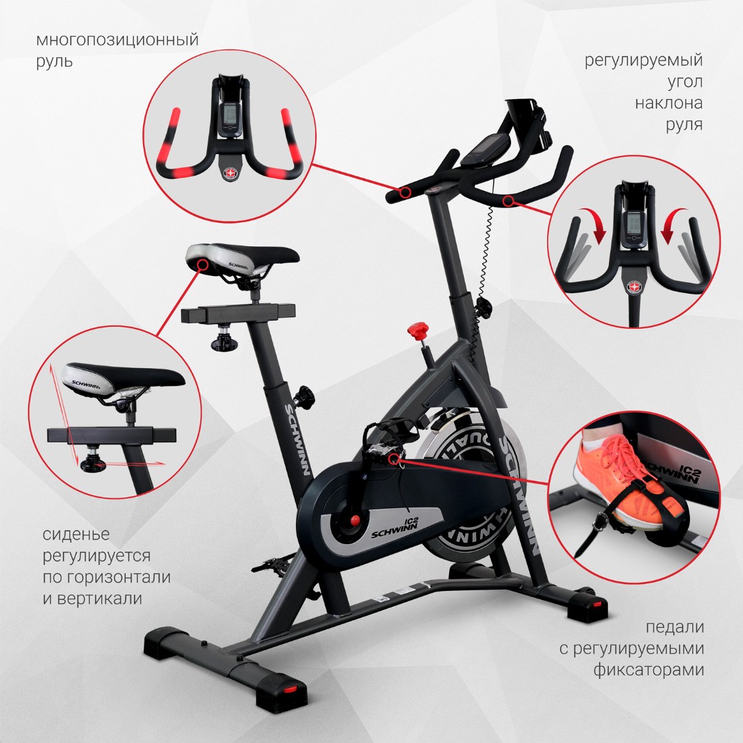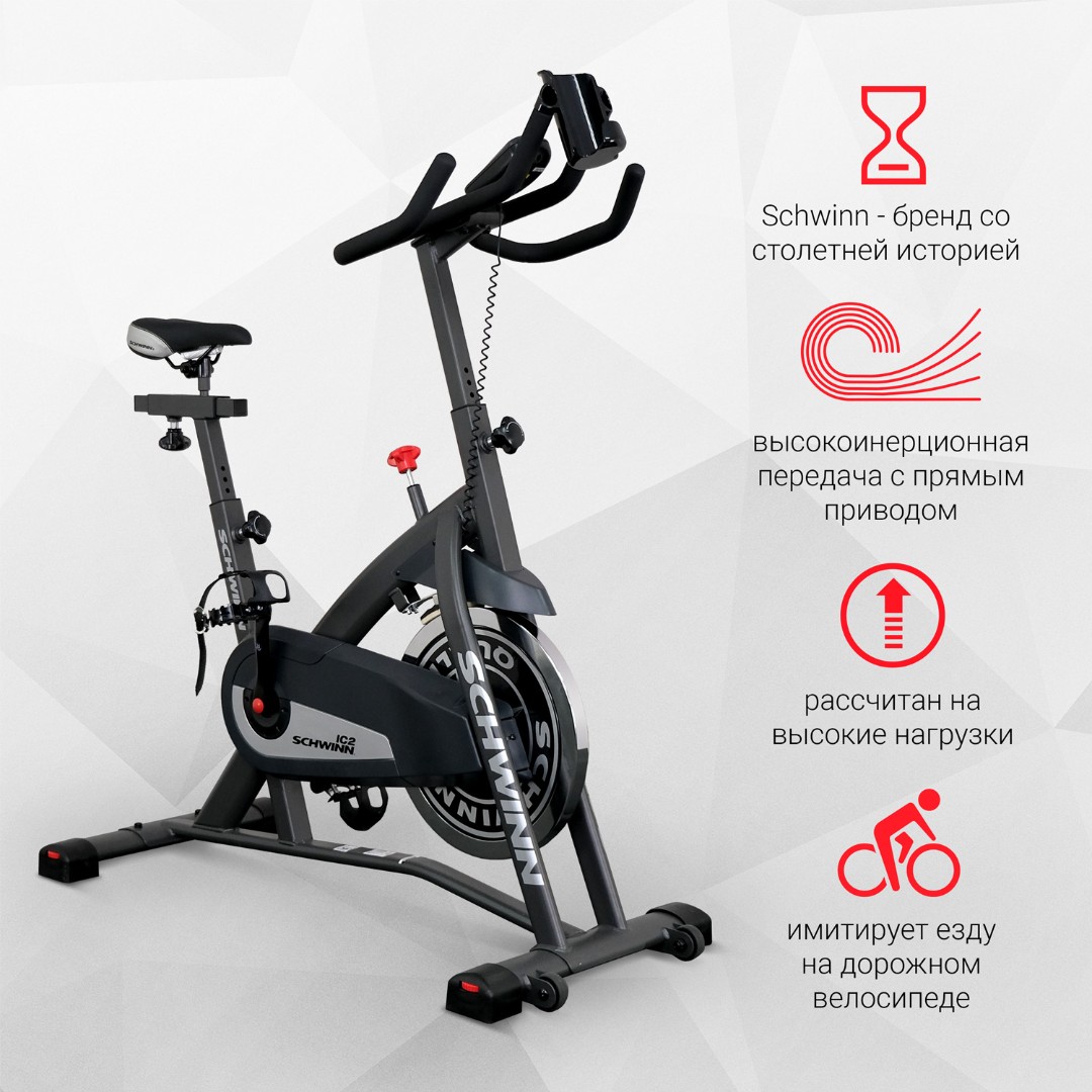 Преимущества Schwinn IC2i:- колодочная тормозная система, кнопка аварийной остановки;