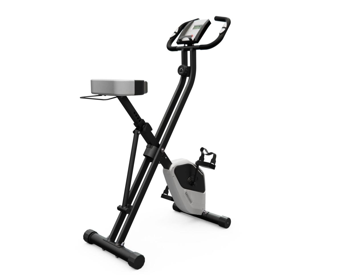 Конструкция велотренажера складная, что позволяет легко его хранить и транспортировать. Сиденье оснащено держателем для полотенца - это очень удобно для пользователей. Тренажер оборудован компенсаторами неровностей пола для стабилизации и карманом для хранения мелких предметов.