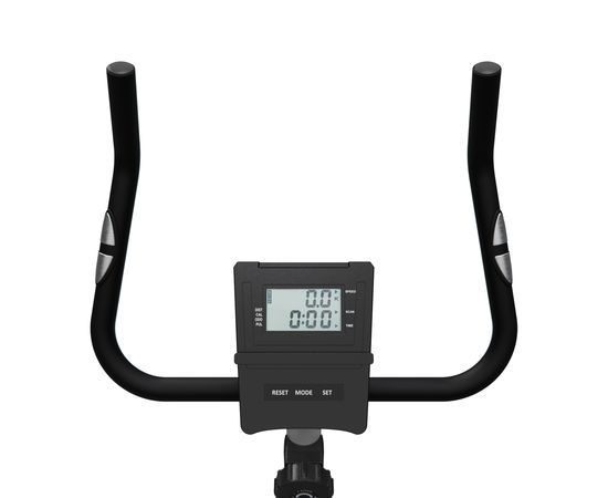 Монохромный LCD дисплей велотренажера отображает следующие показатели: скан, скорость, время, калории, пульс и расстояние. Для работы консоли требуются 2 батарейки типа ААА (не входят в комплект).