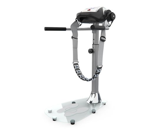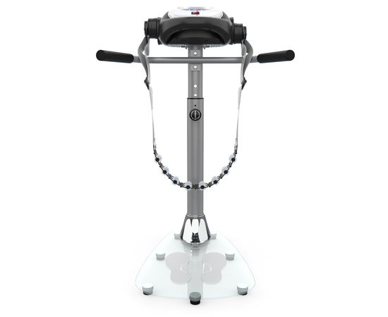 Массажёр имеет компактную и надёжную конструкцию. В качестве основания использована гальваническая труба диаметром 76 мм и толщиной 1,5 мм. Платформа выполнена из закалённого стекла. Максимально допустимый вес пользователя — 110 кг. В комплектацию входят 2 массажных пояса, которые крепятся к передней консоли. Для удобства и безопасности предусмотрены два поручня по бокам.Мультимедиа