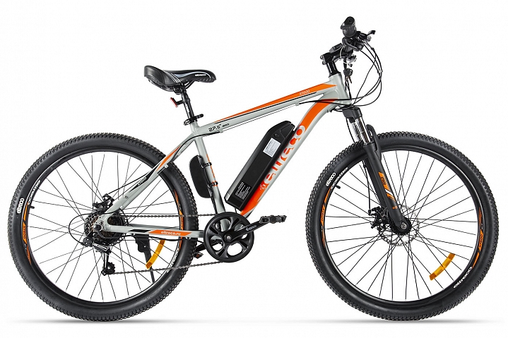 27,5" спицованные колёса в новом дизайне на усиленных двойных ободах оснащены вседорожной резиной Eltreco, имеющей частый мелкий протектор. Спереди установлена амортизационная вилка, а за остановку отвечает дисковая тормозная система Eltreco с роторами 160 мм. На новой модели установлена 6-скоростная система передач Shimano Tourney с удобными переключателями системы Micro Shift. В комплектацию входит боковая подножка. На руле расположен пульт управления с LED-индикацией, отвечающий за управление трёхуровневой системой помощи педалированию.