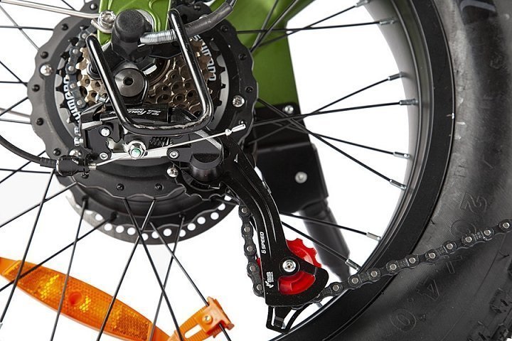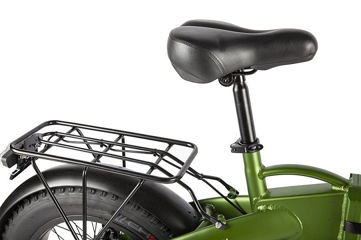 При этом не забыты практичность и удобство! Задний металлический багажник выдерживает до 20 кг груза. На фэтбайке установлены передняя фара и красивый задний фонарь со стоп-сигналом и "поворотниками", питающиеся от аккумулятора велогибрида.Особенности модели: