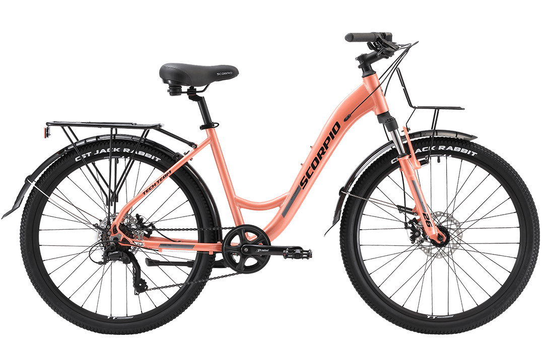 За сглаживание неровностей при езде по не очень хорошим дорогам отвечает амортизационная вилка. Она совместно с удобным эргономическим седлом обеспечивает райдерше необходимый комфорт в движении. Исключают загрязнение одежды летящей из под колёс грязью полноразмерные крылья. Перевозить грузы помогут багажники, имеющиеся и спереди, и сзади. А при остановке удобство парковки будет на совести складной подножки.